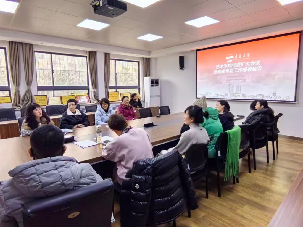 2026年3月5日,艺术学院在德雅楼二楼会议室召开艺术学院党委(扩大)会议暨2026年春季学期工作部署会议。学院党委书记魏喆吉,院长王静怡,党委副书记郭瑾瑜,副院长董博超、李晓囡、黄钺出席会议。